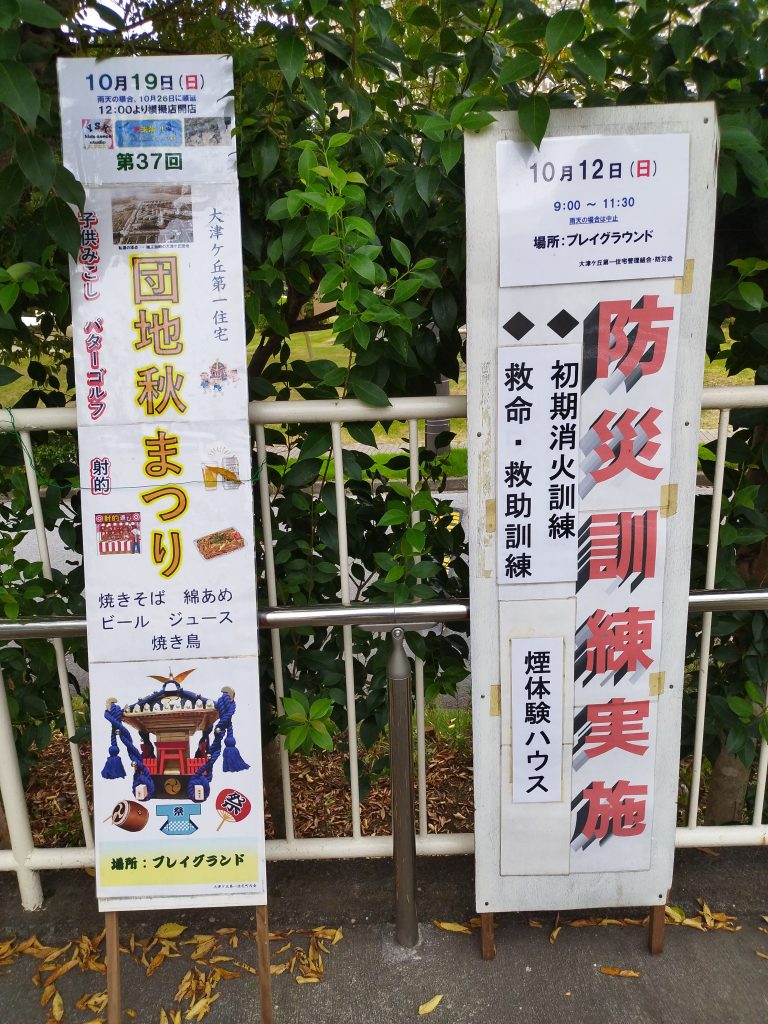 【大津ケ丘第一管理組合】10/12 「防災訓練実施」・10/19 「団地秋まつり」 開催です!! 2025年10月8日 最終更新日時 : 2025年10月8日 kazakita-furu 場所:プレイグラウンド ご参加ください。